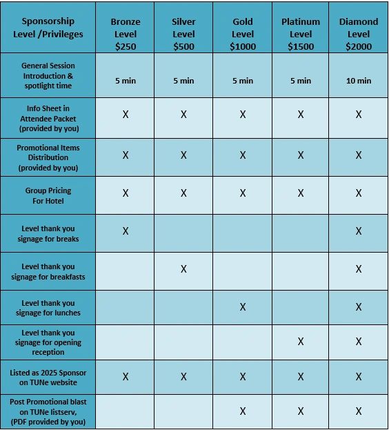 TUNe assumes no responsibility for items left unattended in meeting, vendor areas or exhibit rooms.